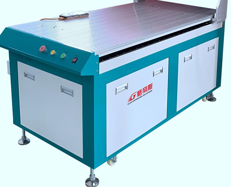 Put the work-piece on the moving platform by the designed fixture, the working platform and gluing nozzle move as programmed track to coat the work-piece accurately by compressed air.